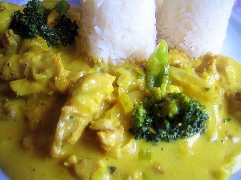 Broilerinjauhelihapihvit, curry-kookosriisiä ja jugurttikastike
