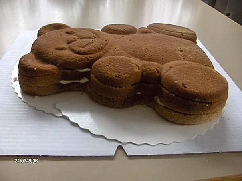 Laitan tähän muutaman kuvan miten kakun koristelu eteni. Kakku oli täytetty hillolla, banaanilla ja kermalla (muistaakseni, hyvää se ainakin oli!). Päällinen muistuttaa unelmatortun täytettä, johon tulee voita ja tomusokeria. Kuulostaa ehkä oudolta, mutta se maistui todella hyvältä.